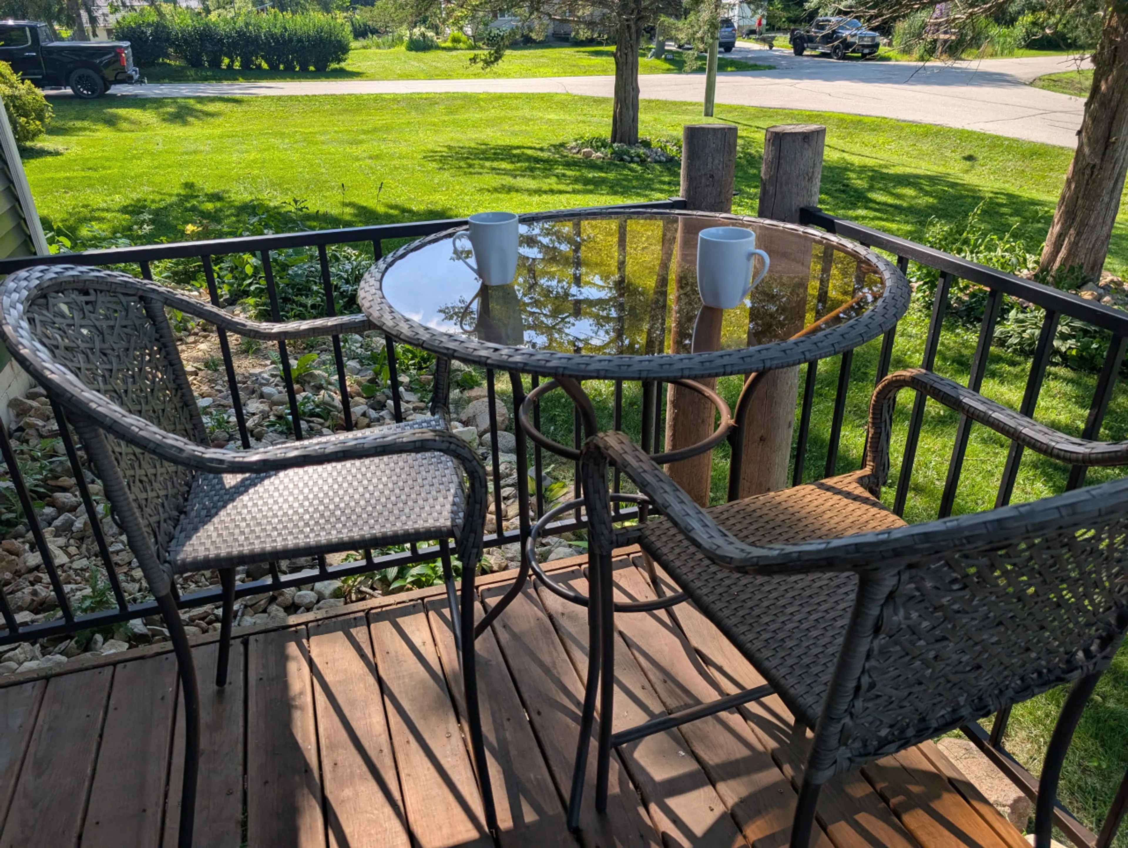 New patio! Enjoy the peaceful summer evenings grilling out by the fire! Charming and unique. The Urban Cabin offers a fantastic location just minutes from UNI in a quiet neighborhood. The quaint interior cabin stylings and well appointed amenities have you feeling like you've escaped to the cozy fam...